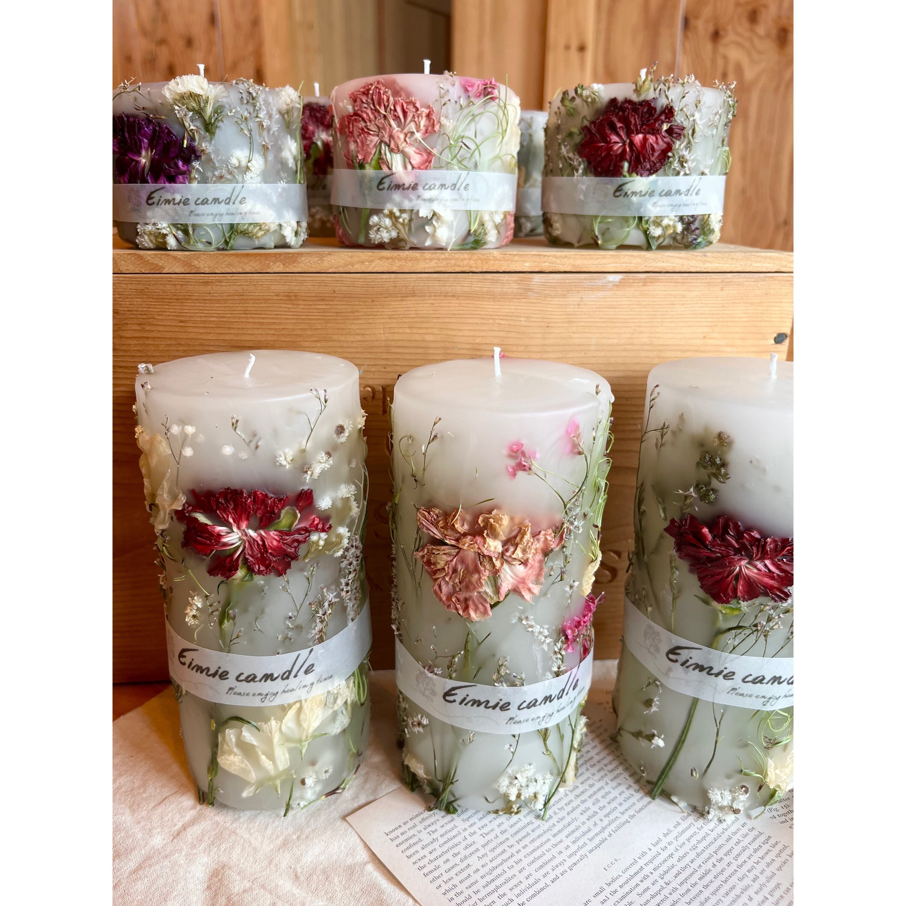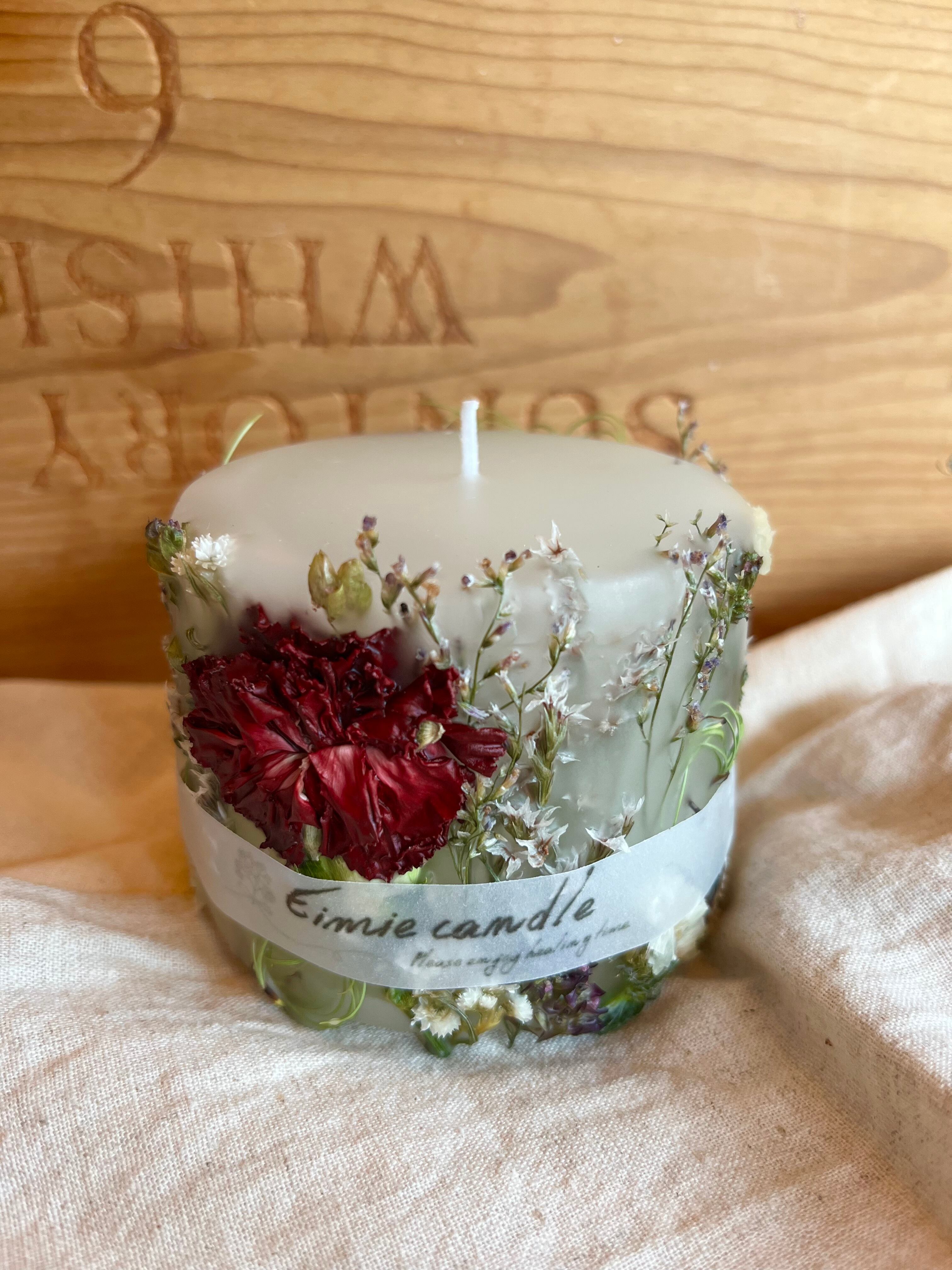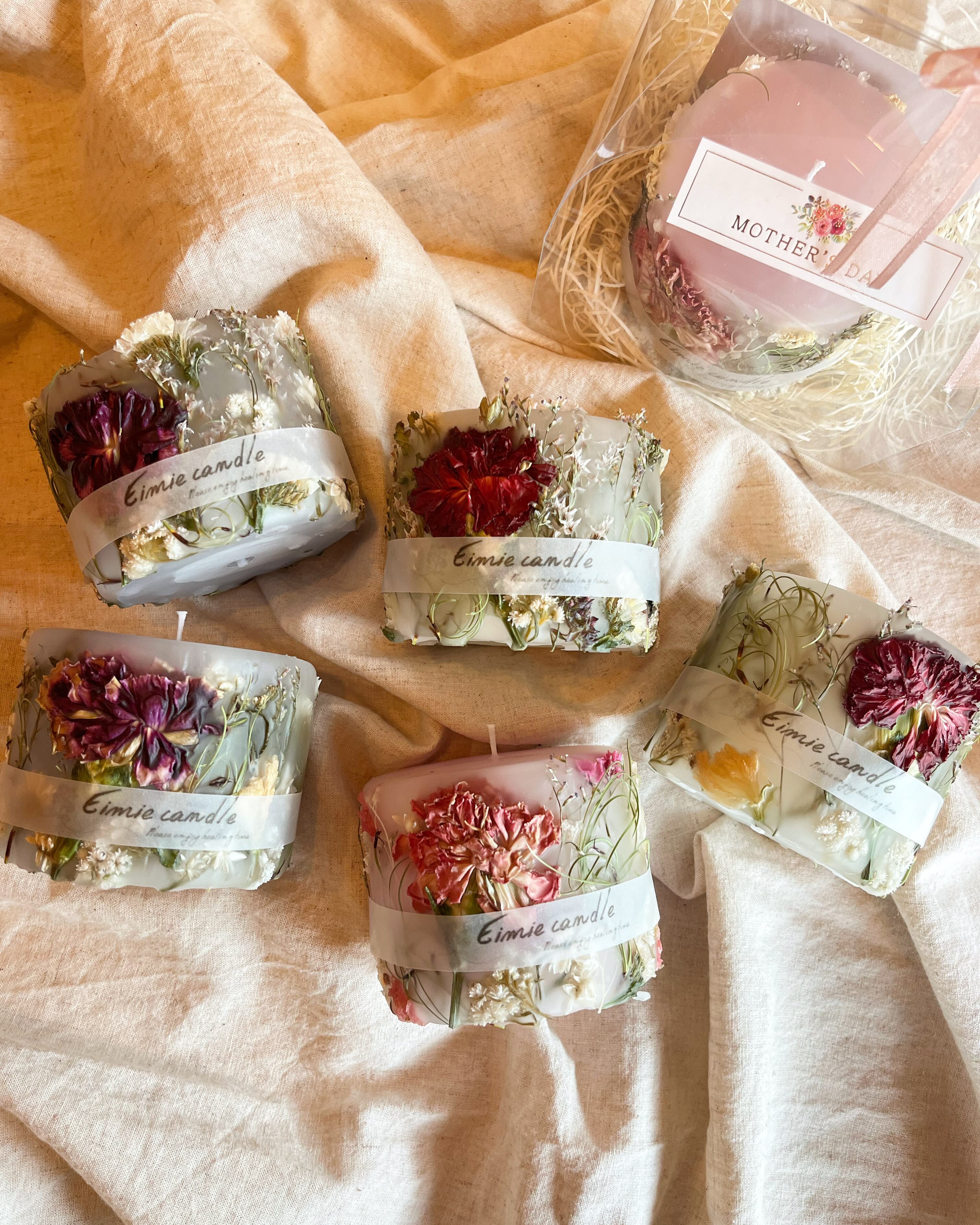ドライフラワーのカーネーションを使った母の日ギフトキャンドル。